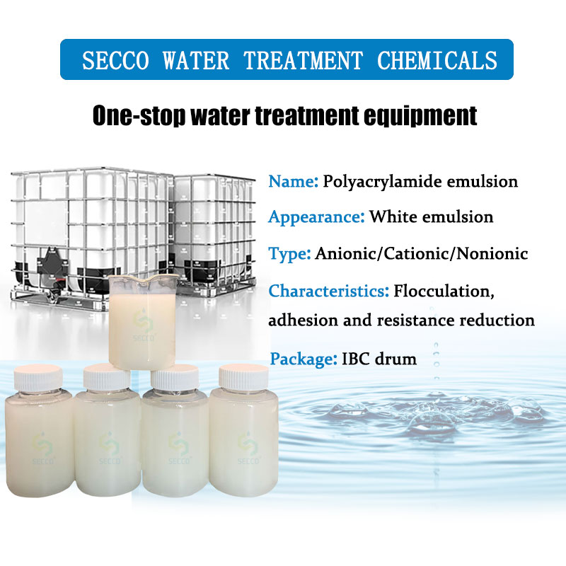 Polyakrylamidemulsion framställs genom dispersion eller omvänd emulsionspolymerisering, som är en form av polyakrylamidvätska närvarande. Förutom egenskaperna hos fasta polyakrylamidflocculanter, genom den molekylära kedjan av polära grupper för att adsorbera suspenderade fasta ämnen i vattenpartiklarna, kan emulsionen formatera de stora flockerna genom bro mellan partiklarna eller el.